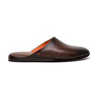 Home living is a precious dimension to be experienced with the style and elegance of Santoni loungerwear models. A comfortable model to wear with informal outfits, without sacrificing the typical elegance of the brand. Product details Product ID: PMXXA1644XXX1CLBT50 - Men’s slipper - Crafted from leather - Colour: brown - Rubber sole - Printed Santoni logo on the insole - Made in Italy