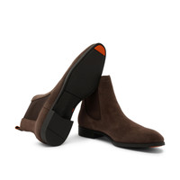 Understated styling for life in the fast lane. This Chelsea boot is crafted from high-quality leather, patina using Santoni’s age-old artisanal techniques. Characterised by elasticated side inserts and a rear pull tab that make it quick and easy to slip on and off in a hurry, the design is finished with a lightweight, flexible rubber sole for optimal grip. Product details Product ID: MGSI13414SMAISYWT50 - Men’s Chelsea boot - Crafted from hand-polished leather - Colour: dark brown - Pull tab - Elasticated side inserts - Tapered silhouette with round toe - Orange leather lining - Rubber sole - Printed Santoni logo on the insole - Made in Italy
