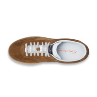 The new DBS Oly Sneaker flaunts a refined design with retro undertones, recalling a Santoni archival classic. Crafted from plain suede, it features a unique side detail inspired by one of our signature codes—the double buckle—lifted from our formal shoe edit and transformed into a mark of modern style: a detail echoed on the contrast leather tongue in the form of an all-over raised motif. Complete with a slim natural-toned rubber sole to accentuate its retro charm. Product details Product ID: MBPL21975FARCEGCM62 - Men's low-top sneaker - Crafted from suede - Colour: brown - Double-buckle-inspired leather side detail - Subtle double-buckle detailing on the tongue - Lace-up fastening - Natural-tone rubber sole - Santoni lettering moulded into the tread - Made in Italy