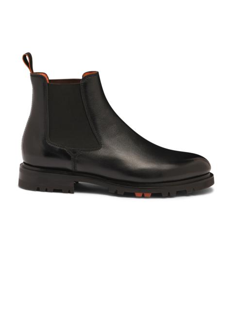 Effortless style for life in the fast lane. This Chelsea boot is crafted from luxurious leather, treated with our iconic “velatura” coloring technique for a unique gradated effect. Elasticated side inserts and a rear pull tab make it quick and easy to slip on and off, whilst a double-buckle-inspired detail on the tread in signature Santoni orange marks every stride with unmistakable charm. Designed with a Goodyear welt construction for an exceptionally soft, flexible feel. Product details Product ID: MCCO17748SM3GGKRE89 - Men’s Chelsea boot - Crafted from leather - Color: dark brown - Elasticated side inserts - Logo tape pull tab - Flexible Goodyear welt construction - Rubber sole - Orange double-buckle-inspired detail - Printed Santoni logo on the insole - Made in Italy