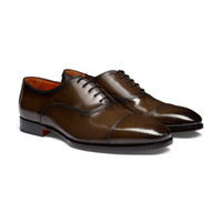 Santoni’s meticulously selected materials and fine craftsmanship elevate the timeless Oxford lace-up to new heights. Presented in smooth leather, this iteration is characterised by an elegant silhouette with stitching on the toe. Our signature Arancio Santoni adds a flash of orange to the interior and sole. Product details Product ID: MCAD18883JC6BNTGT21 - Crafted from leather - Color: dark brown - Seam across the toe - Five-hole lace-up fastening - Classic tapered silhouette - Leather sole with half rubber heel - Printed Santoni logo on the insole - Made in Le Marche, Italy