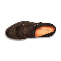 A contemporary take on a timeless icon. This double-buckle shoe marries the legacy of Santoni with modern charm, crafted from fine suede with quintessential brogue perforations and gold metal details. But what truly sets this shoe apart is its structured yet lightweight construction, featuring a multi-layer sole with a leather welt and chunky rubber tread. Product details Product ID: MCCO19160JL4GRVRT50 - Crafted from suede - Color: dark brown - Brogue detailing - Rounded silhouette with tapered toe - Double buckle - Leather welt - Chunky rubber sole - Printed Santoni logo on the insole - Made in Le Marche, Italy