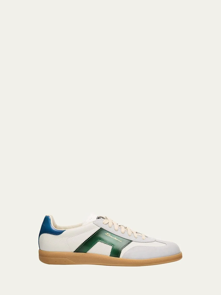 Santoni "DBS" low-top sneakers in leather and suede Flat heel Round, wingtip toe Lace-up vamp Logo on the tongue Embossed logo on the heel Golden logo on the side Rubber outsole Lining: Leather Made in Italy Online Inquiries: BGS21_NBNDD| Store Inquiries: #4678778
