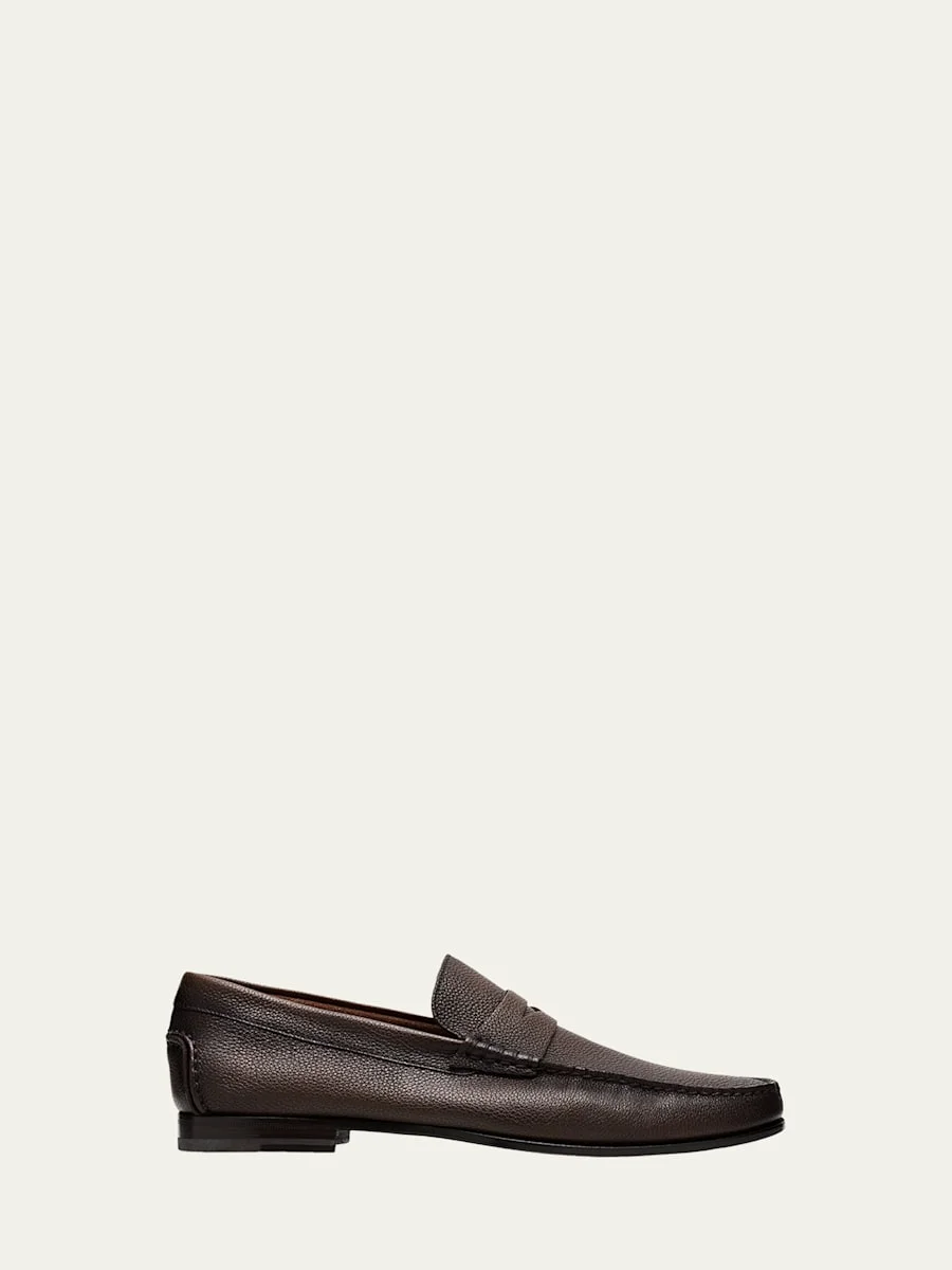 Santoni "Ikangia" penny loafers in burnished calfskin Stacked heel Round moc toe Penny keeper strap Removable insole with charcoal filter Leather lining Sport sole Slipon style Made in Italy