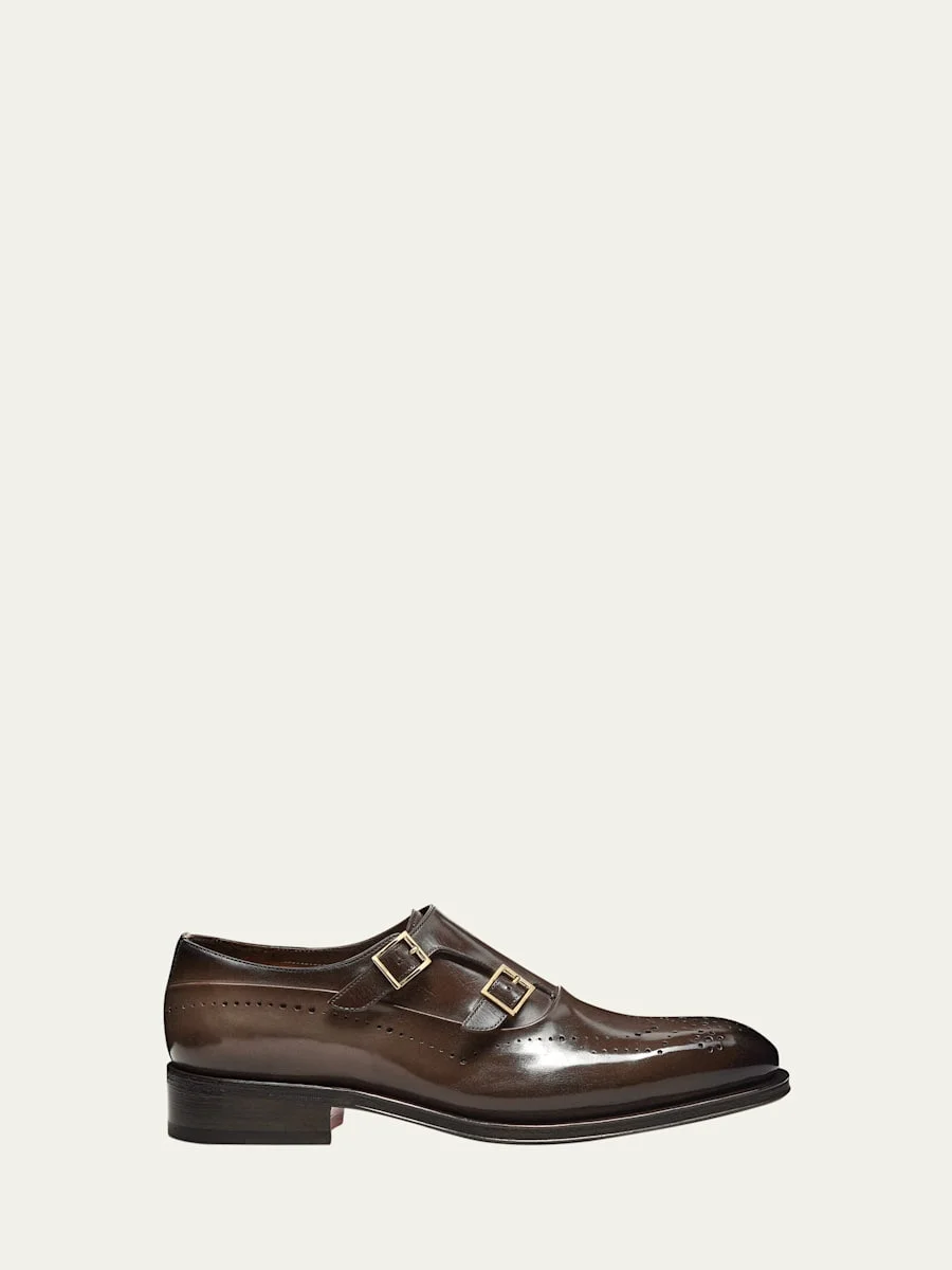 Men's Kaj Brogue Leather Double-Buckle Monk Strap Loafers