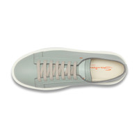 A casual classic, reinterpreted by Santoni to bring artisanal finesse to off-duty looks. Crafted from tumbled leather, this sneaker boasts a clean, compact design that pairs effortlessly with endless ensembles. Branded with a logo print on the tongue and a statement orange detail on the tread for a flash of our signature Santoni Arancio. A flexible rubber cupsole completes the design for impeccable comfort from morning to night. Product details Product ID: MBCD21571BARCMMDG20 - Crafted from tumbled leather - Color: sky blue - Round toe - Lace-up fastening - Rubber cupsole - Santoni Arancio orange double-buckle detail on the tread - Made in Le Marche, Italy