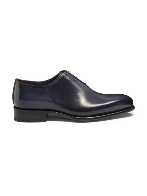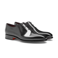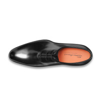 Timelessly elegant lines, artisanal techniques engrained in Italy’s rich cultural heritage and Santoni’s innovative touch. This Oxford shoe has been crafted entirely by hand, boasting a hand-polished leather upper with stitching only on the heel. Its elegant silhouette is crafted using an innovative Goodyear construction: a complex and extremely effective technique that ensures resistance whilst providing superior performance in terms of breathability and water-tightness. The sole can also be replaced, resulting in a timeless shoe that you can continue to wear for many years to come. Product details Product ID: MCCR16229MC1HVVDN01 - Men’s Oxford shoe - Crafted from hand-polished leather - Colour: black - Narrow-fit tapered silhouette - Goodyear construction - Can be resoled - Three-hole lace-up fastening - Leather lining - Leather sole with half rubber heel - Printed Santoni logo on the insole - Made in Italy