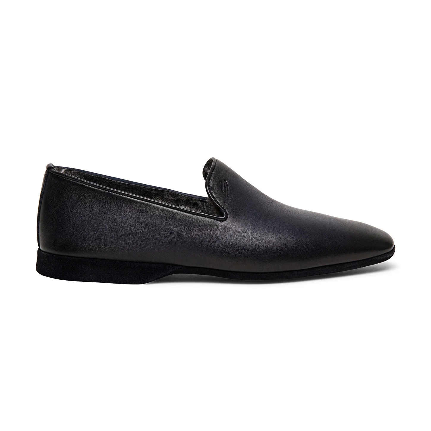 This cosy Santoni slipper marks the passing of your off-duty hours, specially dedicated to precious you time. Crafted from premium-quality leather, it’s lined in luxurious fur for an extra dose of comfort. Product details Product ID: PMXXA2305XXX1CLBU59 - Men’s slipper - Crafted from leather - Colour: blue - Lined in lamb fur - Embroidered S on the side - Printed Santoni logo on the insole - Made in Italy