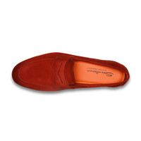 Elevate your everyday wardrobe with this suede loafer, adding a refined update to office-to-evening looks. This style flaunts an elegant silhouette with a classic saddle strap and raised apron stitching to accentuate its timeless lines. A contrast orange sole marks every stride with signature Santoni allure, whilst its Goodyear welt construction makes for a soft, flexible feel. Product details Product ID: MCNC18837SA4SEAAR87 - Men's loafer - Crafted from suede - Colour: red - Raised apron stitching - Classic tapered silhouette - Goodyear welt construction - Leather sole with half rubber heel - Printed Santoni logo on the insole - Made in Italy