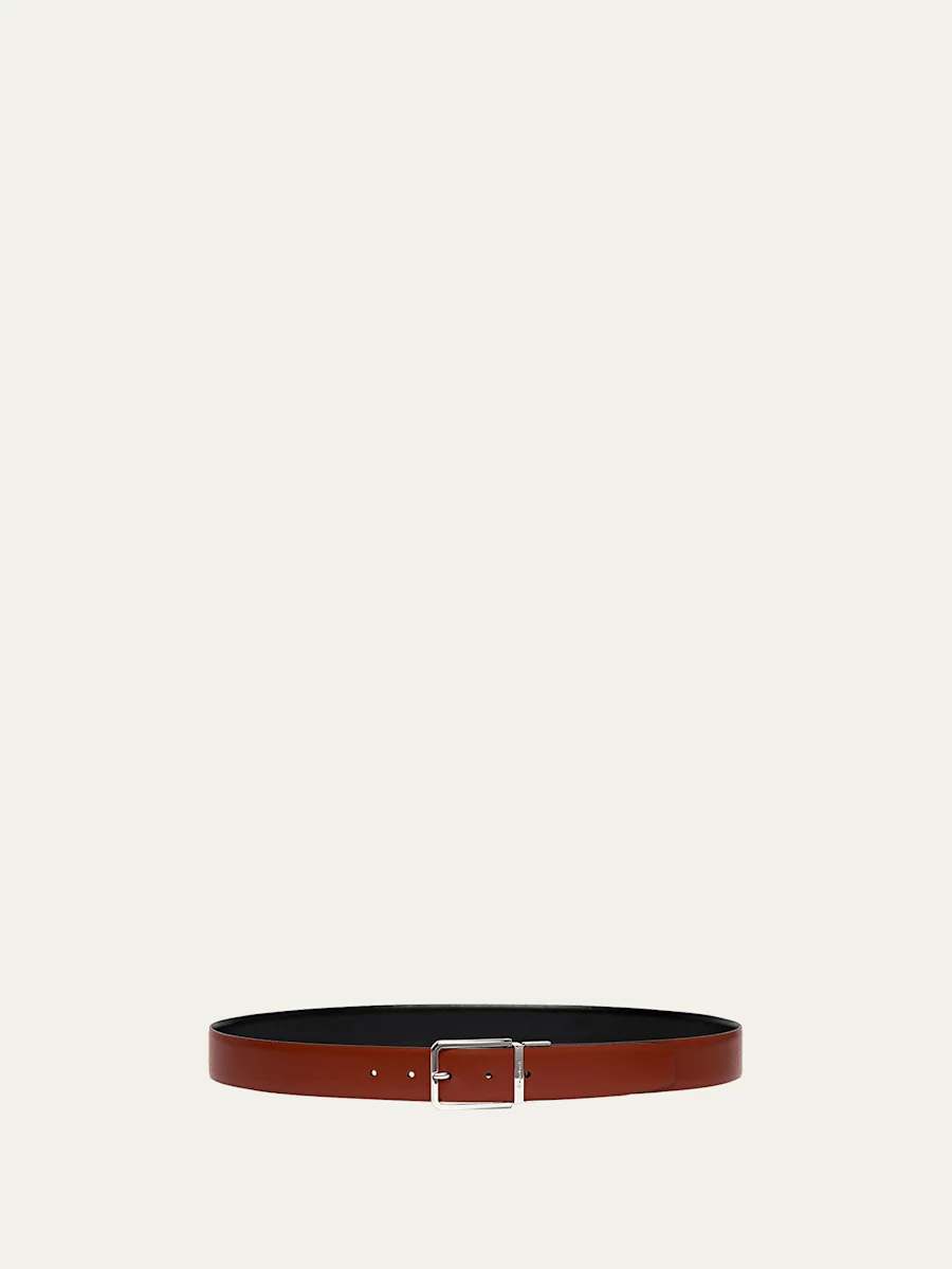 Santoni reversible belt with contrasting smooth leather sides Approx. 1.4"W Silvertone rectangular single-prong buckle Adjustable fit Leather Made in Italy Online Inquiries: BGS21_NA04B| Store Inquiries: #4400179