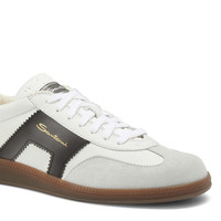 The DBS Oly sneaker is an authentic expression of Santoni’s DNA. This style reimagines the classic ‘70s tennis shoe, updating its retro aesthetic with modern functionality and refined materials. Santoni’s signature double-buckle detail in elegant gradated leather enriches the sides of its leather and suede silhouette, borrowed from our formal footwear edit and transformed into an emblem of modern style. Product details Product ID: MBPL21965DKTCYNEI10 - Crafted from leather and suede - Color: white and black - Gradated leather double buckle-inspired detail on the sides - Lace-up fastening - Contrast rubber cupsole - Santoni lettering moulded into the tread - Made in Le Marche, Italy
