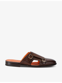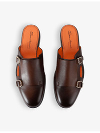 Monk double-buckle leather mules