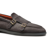 Santoni’s signature style codes are seamlessly intertwined to create this sleek, contemporary double-buckle shoe. Crafted from impeccably supple Seta suede, it’s enriched with our iconic Velatura color-graded finish, embodying Santoni’s devotion to chromatic perfection and artisanal excellence. Hallmarked with a Sigillo stitch in Arancio Santoni orange and a bold accent on the tread, marking every stride with the iconic allure of the Maison’s double buckle. Product details Product ID: MGAR19006PLUSEAAG93 - Crafted from Seta suede - Treated with Santoni’s Velatura color-graded finish - Color: Lava Gray - Apron stitching - Double-buckle closure - Classic silhouette with round toe - Arancio Santoni Sigillo stitch - Tonal rubber sole with double buckle pattern - Arancio Santoni double-buckle detail on the tread - Printed Santoni logo on the insole - Made in Italy