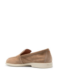 almond suede loafers Highlights - Beige - Calf suede - Almond toe - Moc stitching - Branded leather insole - Rubber sole - Slip-on style - This piece comes complete with a protective dust bag. Made in Italy Composition Lining: Calf Leather 100%, Fabric 100% Outer: Calf Suede 100% Sole: Rubber 100% SIZE & FIT Measurement HEEL 0.98 in(2.5 cm) Sole height 0.39 in(1 cm)