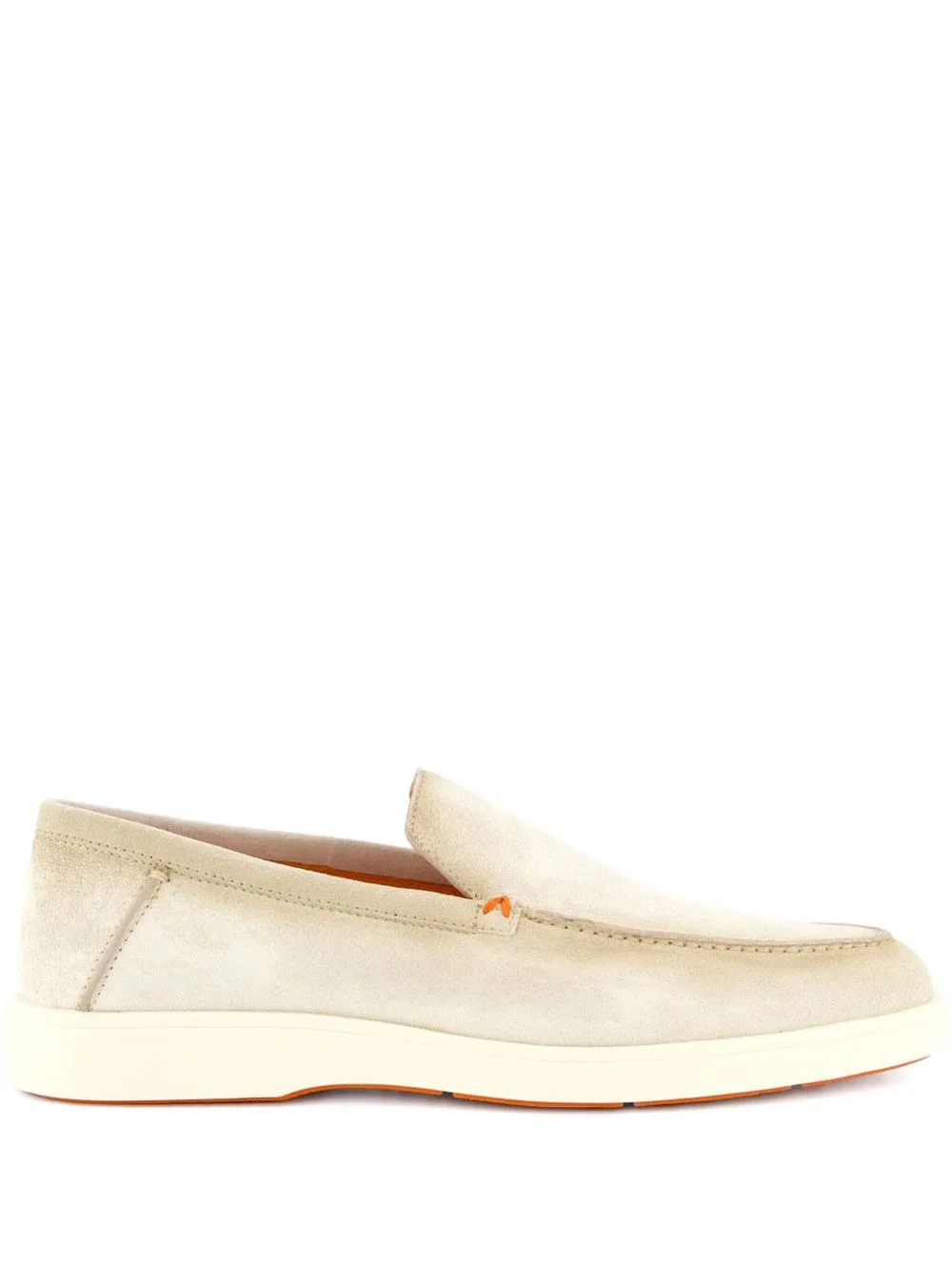 suede leather loafers Highlights - Beige - Suede leather - Moc toe - Flat sole - Slip-on style - Leather insole Made in Italy Composition Lining: Calf Leather 100% Sole: Rubber 100% Outer: Suede 100%