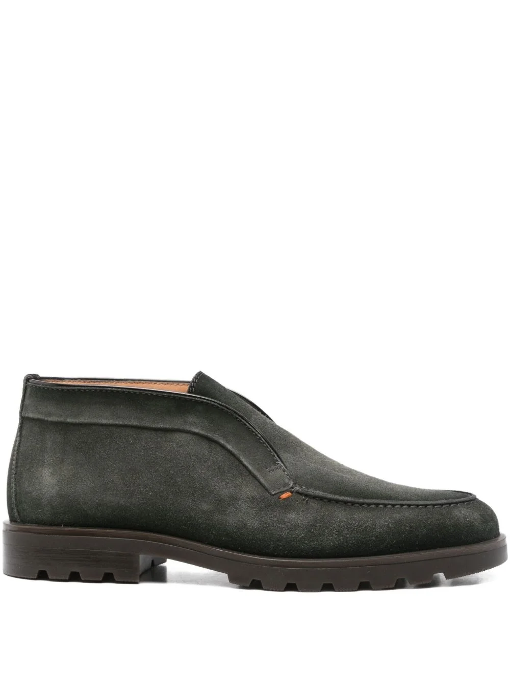 suede leather slip-on boots Highlights - Dark green - Suede leather upper - Almond toe - Textured sole Imported Composition Lining: Leather 100% Outer: Calf Suede 100% Sole: Rubber 100%