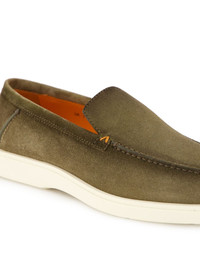 suede loafers Highlights - Green - Nubuck leather - Slip-on style - Almond toe - Branded leather insole - Flat rubber sole Made in Italy Composition Lining: Calf Leather 100% Sole: Rubber 100% Outer: Calf Leather 100%