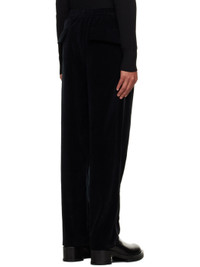 Cotton velvet trousers. · Concealed drawstring at elasticized waistband · Four-pocket styling · Button-fly · Pinched seams at front legs · Cupro satin trim at outseam Supplier color: Black Body: 100% cotton. Trim 1: 100% cupro. Trim 2: 100% cotton. Made in Italy 232968M191003