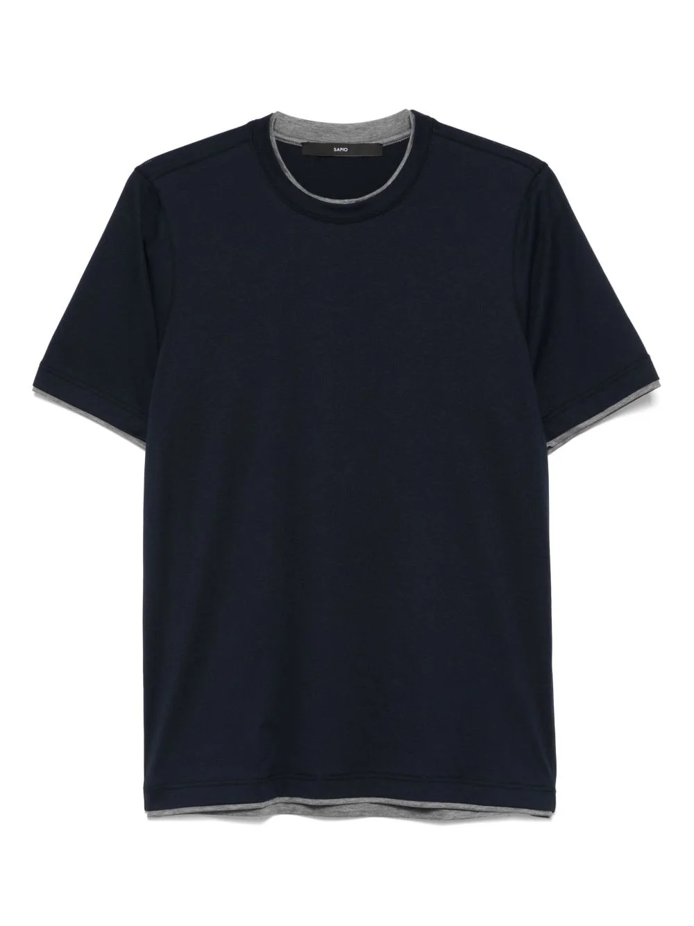 cotton T-shirt Highlights - Navy blue - Crew neck - Short sleeves - Layered details - Contrasting trim Made in Italy Composition Cotton 100%