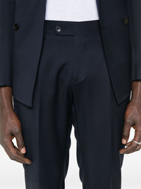 double-breasted suit Highlights - Oxford blue - Double-breasted button fastening - Concealed fly and button fastening - English rear vents - Two side slash pockets Made in Italy Composition Outer: Wool 100% Lining: Cupro 100% SIZE & FIT Model measurements Height 6 ft 0 in(1.84 m) Bust/Chest 37.79 in(96 cm) Hips 37 in(94 cm) Waist 31.49 in(80 cm) FittingInformation Tailored for a slim fit, offering a comfortable fit that sits just away from the body The unfinished hems allow for the length to be altered Made from a midweight non-stretch fabric