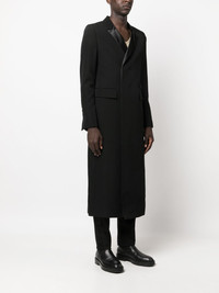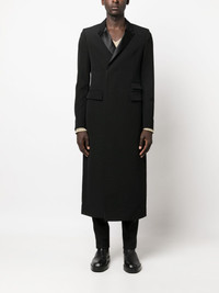 double-breasted wool midi coat Highlights - Jet black - Wool/cotton - Peak lapels - Double-breasted button fastening - Three front flap pockets - Long sleeves - Buttoned cuffs - American rear vent - Straight hem - Mid-length Made in Italy Composition Outer: Wool 100%, Polyester 100% Lining: Cupro 100%, Cotton 100% SIZE & FIT Model measurements Height 6 ft 2 in(1.87 m) Bust/Chest 36.41 in(92.5 cm) Hips 37 in(94 cm) Waist 29.52 in(75 cm) FittingInformation Designed for a slim fit, offering a comfortable fit that sits just away from the body The vented hem offers movement at the rear Made from a midweight non-stretch fabric This piece fits true to size – take your usual size