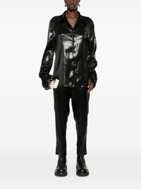 Fluido trousers Highlights - Black - Cire effect - Pressed crease - Mid-rise - Concealed front button and hook fastening - Two side inset pockets - Two rear flap pockets - Cropped leg - Turn-up hem - When buying this unisex item, keep in mind that it is graded in standard men's sizing. Made in Italy Composition Outer: Triacetate 70%, Silk 30% Lining: Cupro 100%, Viscose 52%, Cotton 48% SIZE & FIT Model measurements Height 5 ft 10 in(1.77 m) Bust/Chest 32.28 in(82 cm) Hips 35.03 in(89 cm) Waist 25.19 in(64 cm) FittingInformation This piece is unisex and is designed for a tapered-leg, whether you usually select women's or men's sizes The adjustable tabs allow for fitted preferences Made from a lightweight non-stretch fabric Washing instructions Dry Clean Only