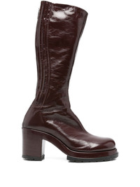 leather knee-high boots Highlights - Red - Leather - Rear zip fastening - Block heel - Round toe - Branded insole Imported Composition Outer: Patent Calf Leather 100% Lining: Calf Leather 100% Sole: Rubber 100%