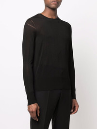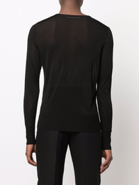 long sleeve jumper black round neck long sleeves straight hem Made in Italy Composition Viscose 100% SIZE & FIT Model measurements Height 6 ft 2 in(1.88 m) Bust/Chest 36.61 in(93 cm) Hips 35.82 in(91 cm) Waist 27.95 in(71 cm) FittingInformation This piece fits true to size. We recommend you get your regular size Cut for a slim fit Made with a mid-weight fabric