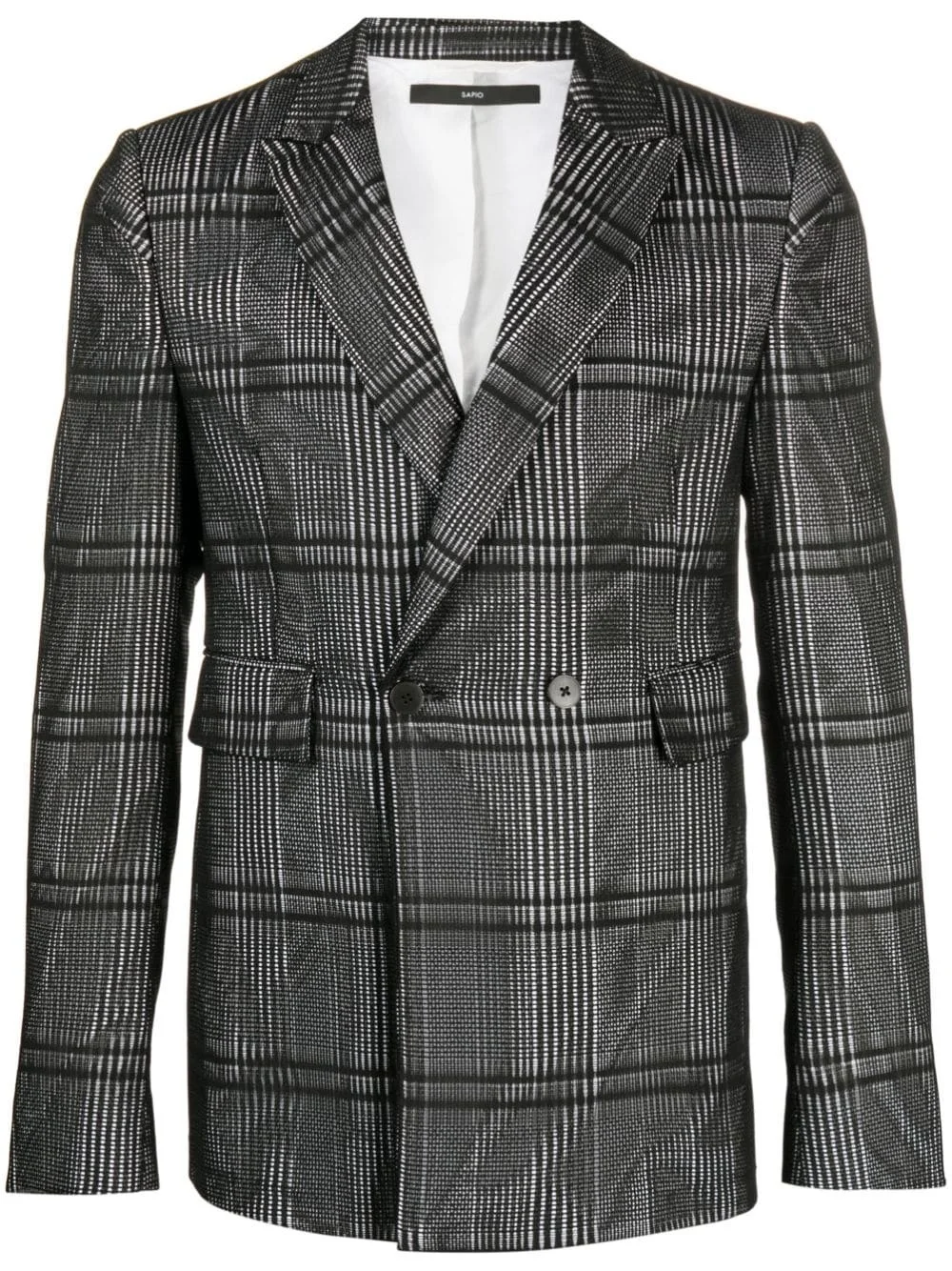 plaid-check print cotton blazer Highlights - Black - Cotton - Plaid check print - Classic lapels - Double-breasted button fastening - Long sleeves - Two front flap pockets - When buying this unisex item, keep in mind that it is graded in standard men's sizing. Made in Italy Composition Outer: Polyester 60%, Triacetate 40% Lining: Cupro 100%, Cotton 100% SIZE & FIT Model measurements Height 5 ft 11 in(1.8 m) Bust/Chest 33.07 in(84 cm) Hips 37.4 in(95 cm) Waist 25.19 in(64 cm) FittingInformation This unisex piece runs small but is designed for a slim fit – take one size up The vented hem offers movement at the rear Made from a midweight non-stretch fabric