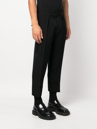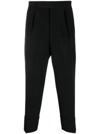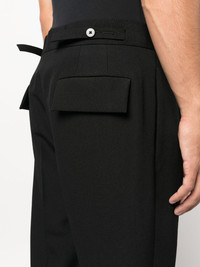 pleat-detail wool-cotton tailored trousers Highlights - Jet black - Wool-cotton blend - Pleat detailing - Mid-rise - Off-centre front fastening - Two side slash pockets - Two rear flap pockets - Turn-up hem - Cropped leg Made in Italy Composition Lining: Cupro 100%, Cotton 100% Outer: Wool 100% SIZE & FIT Model measurements Height 6 ft 2 in(1.88 m) Bust/Chest 37.79 in(96 cm) Hips 35.82 in(91 cm) Waist 29.92 in(76 cm) FittingInformation Designed for a tapered leg, offering a loose unrestricted fit over the leg with a closer fit towards the ankle The adjustable tabs allow for fitted preferences Made from a midweight non-stretch fabric This piece fits true to size – take your usual size