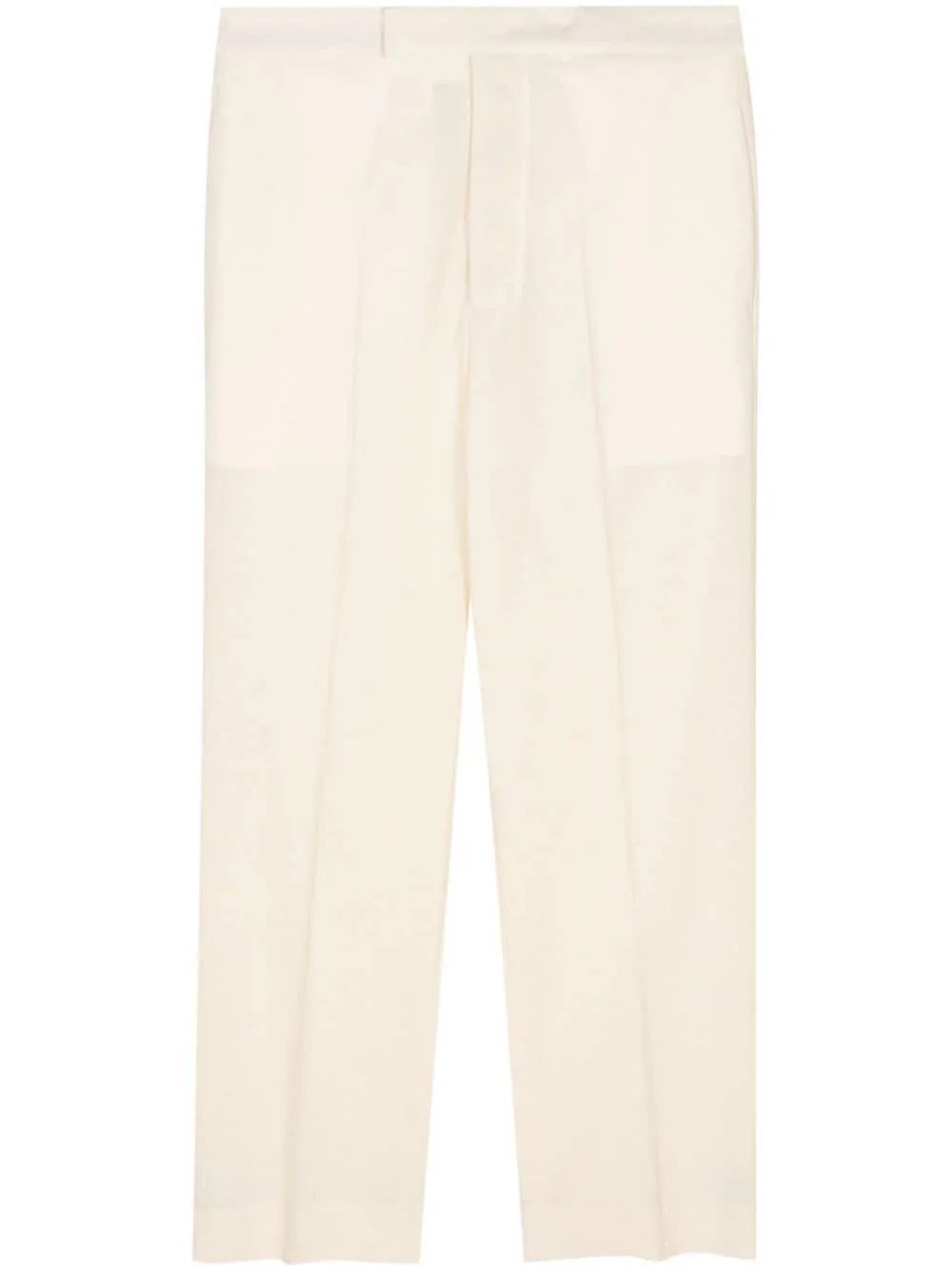 pressed-crease wool tapered trousers Highlights - Light beige - Wool - Pressed crease - Concealed front fastening - Two side slit pockets - Two rear flap pockets - Tapered leg Made in Italy Composition Lining: Cupro 100% Outer: Wool 100%