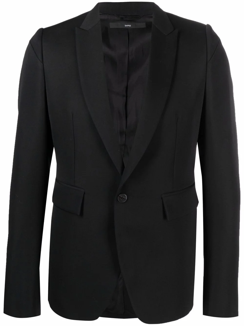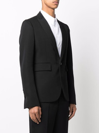 single-breasted tailored blazer black wool/cotton blend slim cut classic lapels long sleeves two side flap pockets Made in Italy Composition Lining: Cupro 100%, Polyester 65%, Cotton 35% Outer: Wool 100% SIZE & FIT Model measurements Height 6 ft 2 in(1.87 m) Bust/Chest 38.18 in(97 cm) Hips 36.61 in(93 cm) Waist 29.13 in(74 cm) FittingInformation This piece fits true to size. We recommend you get your regular size Cut for a slim fit Made with a mid-weight non-stretch fabric