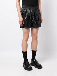 thigh-length track shorts Highlights - Black - Elasticated waistband - Thigh-length - Slip-on style Made in Italy Composition Polyamide 100% SIZE & FIT Model measurements Height 6 ft 2 in(1.87 m) Bust/Chest 34.25 in(87 cm) Hips 36.22 in(92 cm) Waist 29.52 in(75 cm) FittingInformation Designed with a wide leg, offering a loose and roomy fit The elasticated waist allows for a comfortable fit Made from a lightweight non-stretch fabric This piece fits true to size – take your usual size Washing instructions Dry Clean Only