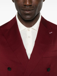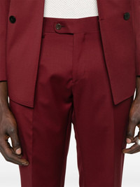 wool suit Highlights - Bordeaux red - Double-breasted button fastening - Front button and zip fastening - Chest welt pocket - Two front jetted pockets Made in Italy Composition Lining: Cupro 100% Outer: Wool 100% SIZE & FIT Model measurements Height 6 ft 0 in(1.84 m) Bust/Chest 37.79 in(96 cm) Hips 37 in(94 cm) Waist 31.49 in(80 cm) FittingInformation Tailored for a slim fit, offering a comfortable fit that sits just away from the body The unfinished hems allow for the length to be altered Made from a midweight non-stretch fabric