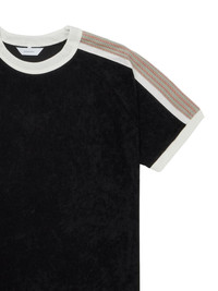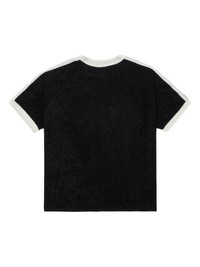 stripe-detail velour T-shirt Highlights - Black - Velour texture - Short sleeves - Crew neck - Ribbed trim - Shoulder stripes Imported Composition Cotton 100%, Triacetate 66%, Polyester 25%, Polyurethane 9% Washing instructions Read Manufacturer Guidelines