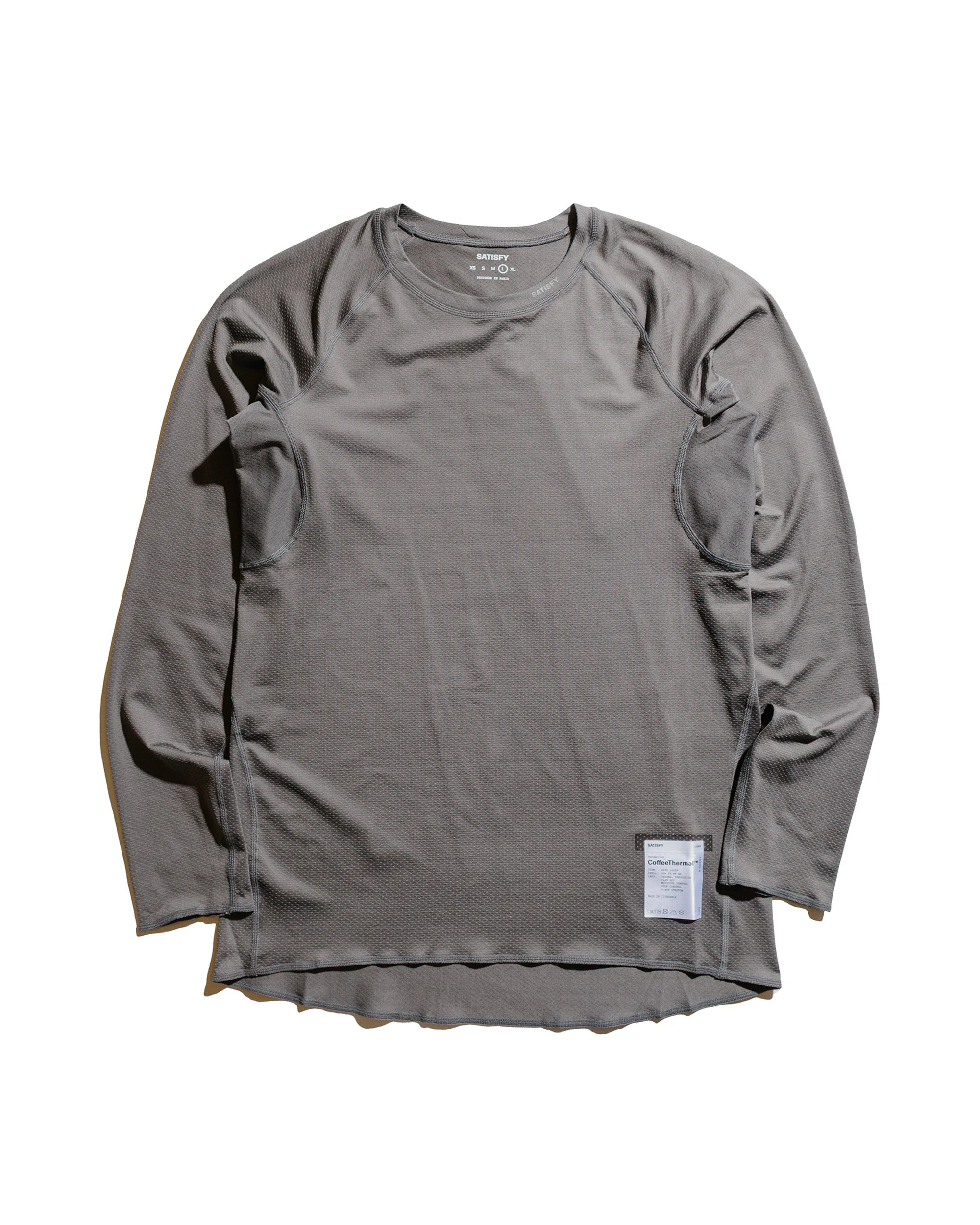 Ideal for those who insist on running when sensible people stay indoors, this base layer from Satisfy is designed to keep you warm while you question your life choices. DETAILS - Italian Justice™ CoffeeThermal™ multidimensional stretch fabric woven with coffee-charcoal infused fibres providing heat-retention - Reversed fabric placement under arms for increased breathability & temperature regulation - Reflective SATISFY® logo at collar - Exterior detachable care label - 118 grams - 68% polyester 24% elastane 8% nylon - Made in Portugal - Model is 6’2” (189cm), 160lbs (73kg) and wearing L