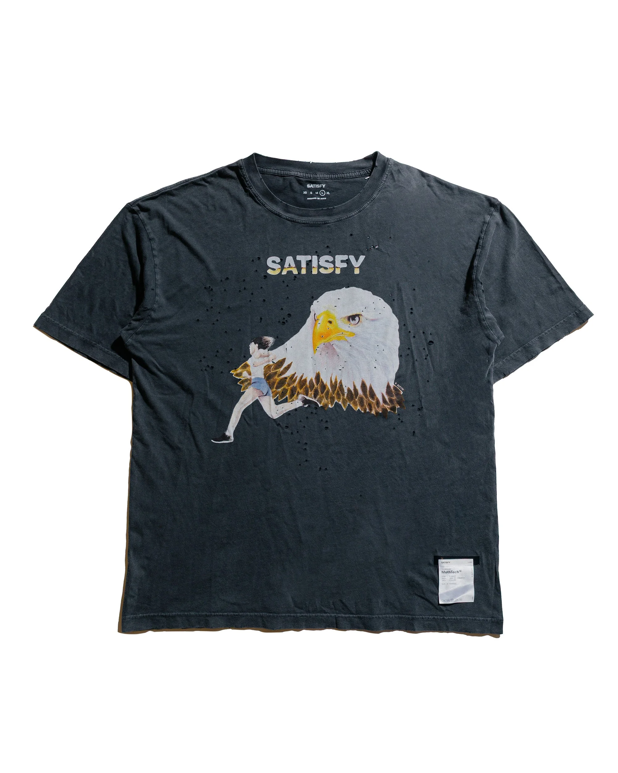 The name itself is kind of funny. The dreaded moth. No one has time for that, instead Satisfy made the perfect holes for you and PURELY for ventilation purposes. Not only is this shirt good to run in, but it is also very useful when hungover. Just ask Brandon from UP THERE this is a man who has experienced both. DETAILS - Organic combed cotton jersey from Portugal - Body mapped laser-cut & hand-opened holes engineered to enhance cooling across heat zones - Screen printed graphic - Exterior detachable care label - Stealth-reflective ©SATISFY logo - 175 grams - 100% cotton - Made in Portugal - Model is 6’2” (189cm), 160lbs (73kg) and wearing L