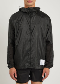 Info & Care Satisfy Pertex Diamond Fuse jacket Can be folded into a transportable pouch; Water-repellent, wind-resistant, hood, dolman sleeves, elasticated cuffs, logo print at chest, zip-fastening side pockets, concealed drawstring at hem Zip fastening through front 100% polyamide; Machine wash Size & Fit Length shoulder to hem: 28 inches/ 71cm Lightweight Relaxed fit Model is 6'1"/ 185cm, chest size 36 inches and wears a size medium