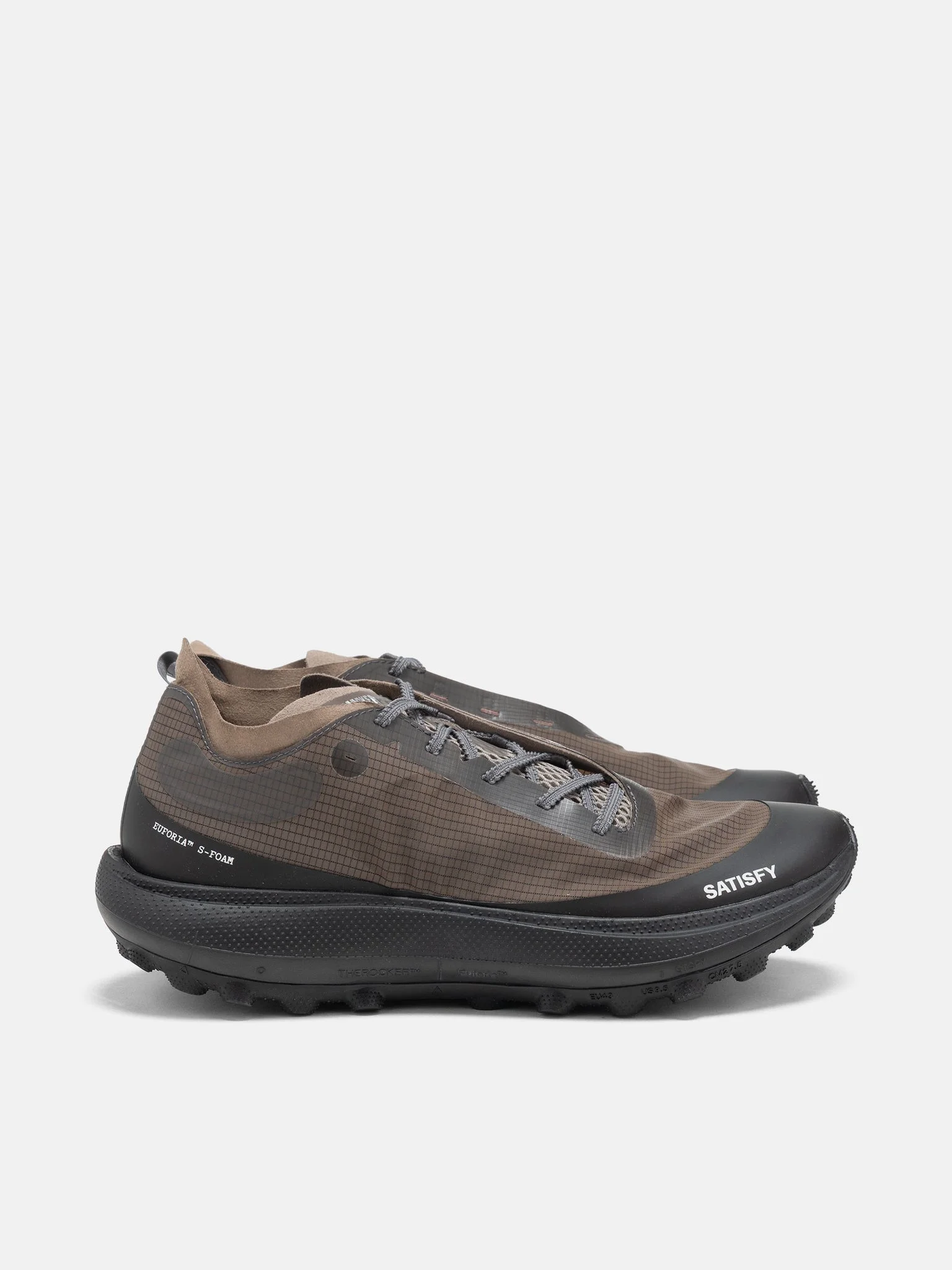 Built for road-to-trail transitions and long-distance efforts, TheROCKER blends advanced traction, cushioning, and durability in one versatile shoe. The Vibram® TuneLug™ outsole delivers secure grip across wet and dry terrain, while SATISFY’s Euforia™ midsole provides stable cushioning that stays consistent over miles. Finished with the lightweight, breathable Rippy™ 66 Monomesh upper, it locks in comfort and resilience for mid- to ultra-distance runs. DETAILS - #40002-AW-SE - Rippy™ 66 high-tenacity monomesh upper - Euforia™ super foam midsole with a proprietary PEBA/EVA blend - TuneLug™ engineered outsole with Vibram® Megagrip™, Litebase™, and Traction Lug™ - Asymmetrical lacing system - Dual-width form: D-width heel, E-width forefoot - Serrated laces - Shoe covers and sticker sheets included