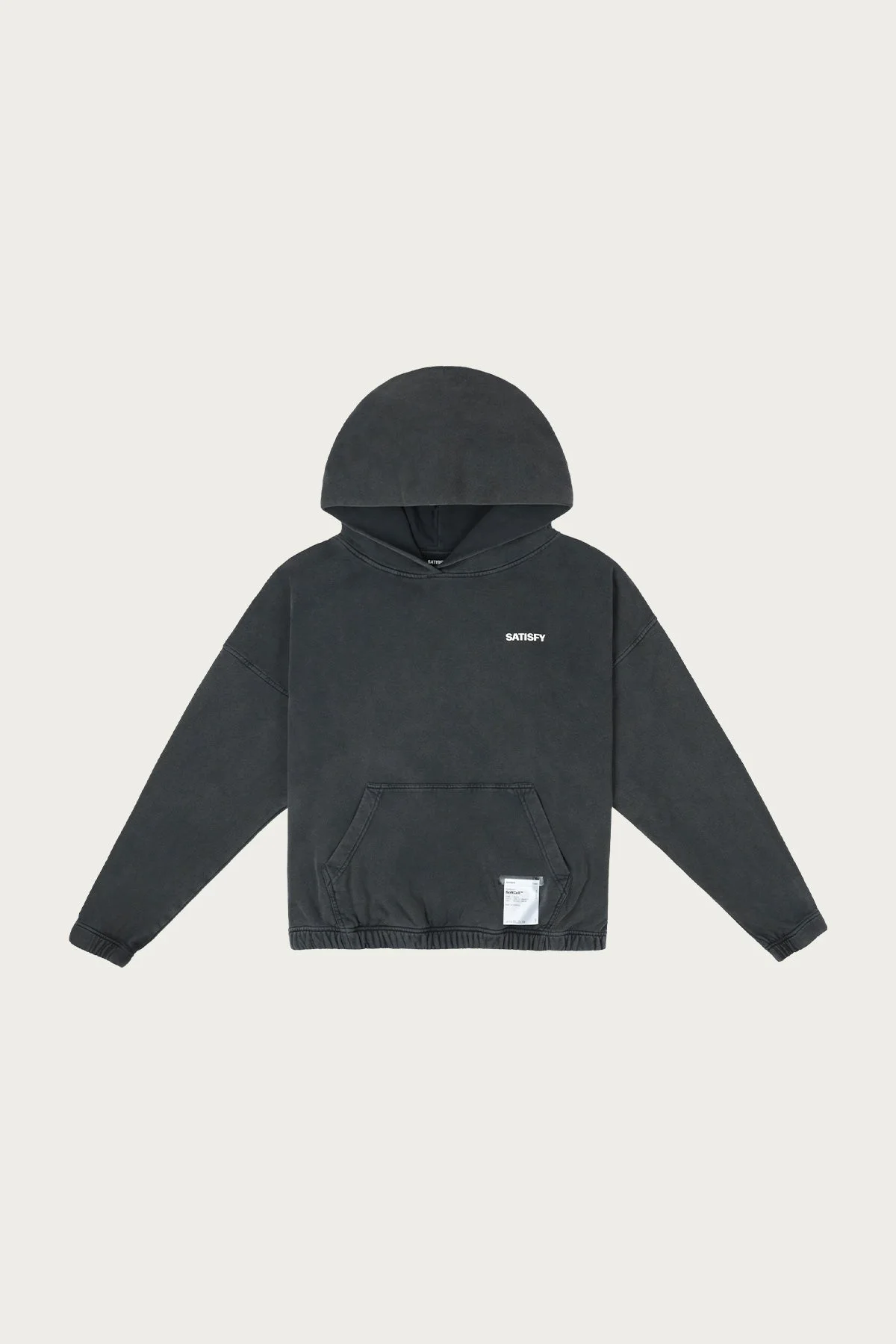 A washed-down staple with vintage spirit and modern utility. Crafted from organic French terry and over-washed for soft drape and a lived-in feel. The fit is generously cropped and relaxed. A hidden mini S‑carabiner in the pouch pocket lets you attach your keys securely, while the detachable care label eliminates rubbing. Elastic cuffs and hem keep things clean and wearable. - 100% organic French terry cotton - Loose, cropped silhouette - Kangaroo pocket with mini S‑carabiner - Elasticated cuffs & hem - Logo branding + low‑key reflective print