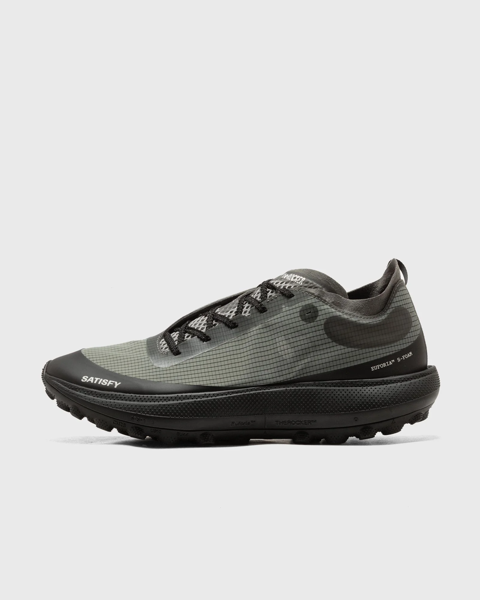 The Satisfy The Rocker Sneaker is an innovative running shoe that combines performance technology with urban design. The breathable Rippy 66 Monomesh upper provides stability and lightness, while the Euforia midsole made of PEBA and EVA delivers optimal cushioning and energy return. The Vibram Megagrip outsole offers excellent grip on roads and trails—even in wet conditions. With its clean, progressive look, the Rocker is not only a functional runner, but also a strong style statement for everyday wear. - Rippy 66 monomesh upper - Asymmetric lacing - Weight: 280 g - Euforia S-Foam midsole - TuneLug Vibram outsole - Lightbase and Megagrip sole Article number: 40002-SH-SE Gender: men Color: SHADOW Material: 100% Synthetic/Textile