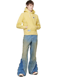 Non-stretch denim jeans. · Fading and whiskering throughout · Five-pocket styling · Zip fly · Zip expansion panel at cuffs · Padded appliques at outseams · Contrast stitching in tan Supplier color: Blue 100% cotton. Made in United States 252116M186000