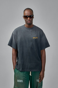 T-shirt in a distressed style with a faded black color. It features a simple design with a small text logo on the chest. Materials: 100% Cotton Color: washed black SKU: 153293 Brand style: FW25TEE008-BLK Size and Fit The model is 1.89m (6.2ft) and wears a size L.