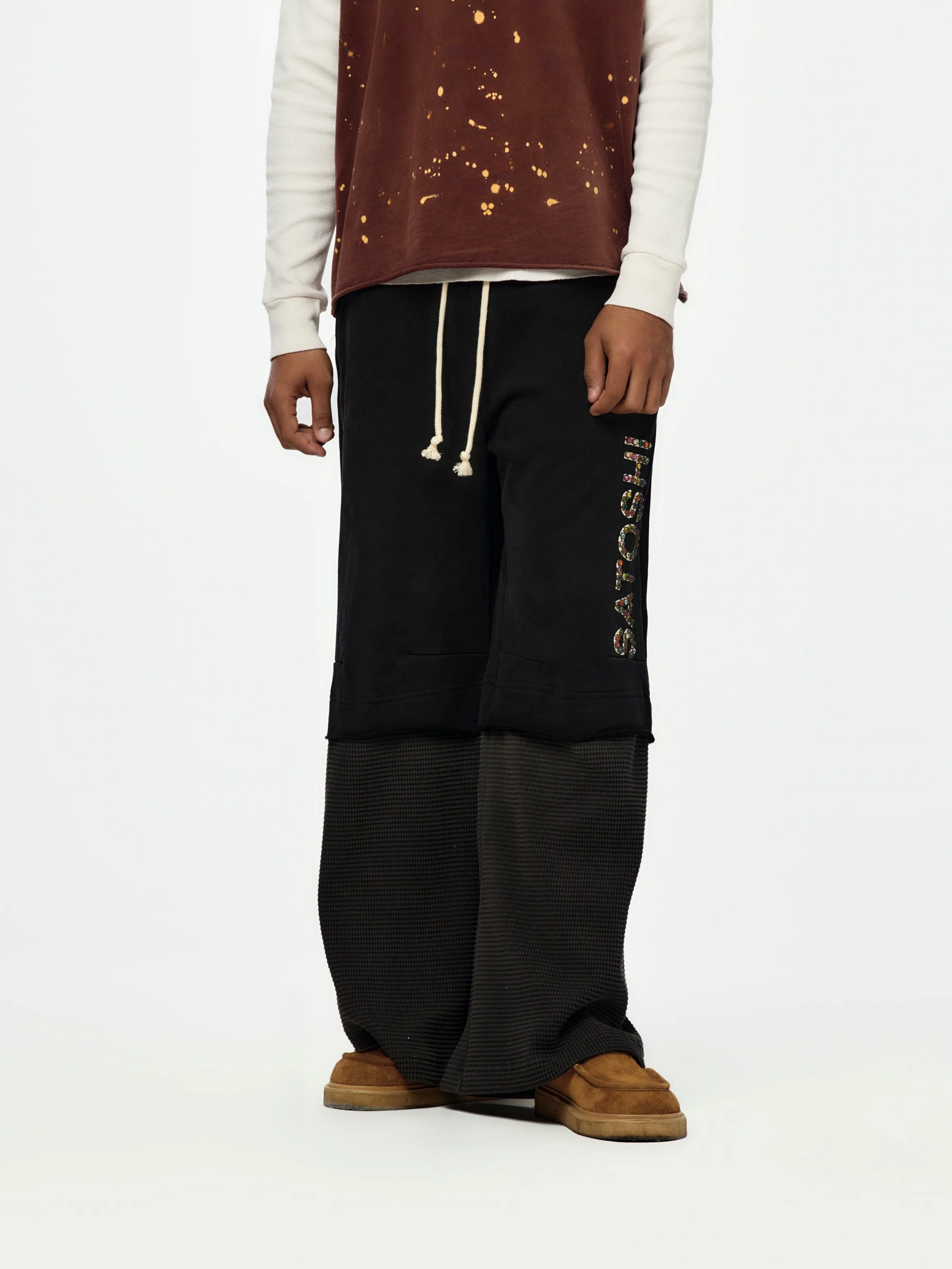 DOUBLE LAYER STUDDED SWEATPANT (BLACK)