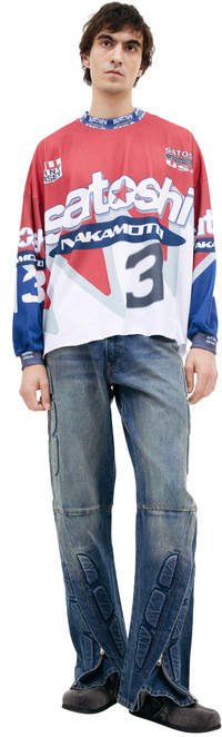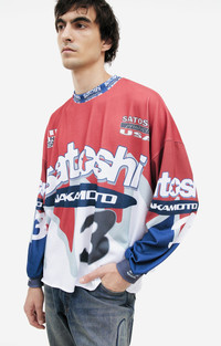 The Speedway Long Sleeve (Red) by Satoshi Nakamoto is made from 100% polyester and is designed for both comfort and style. The relaxed fit is finished with ribbed cuffs and a ribbed neckline, providing structure and durability. Satoshi Nakamoto' screen-printed branding details appear on the front, sleeves, neck, and back of the long-sleeved garment, giving it a bold and distinctive look from all angles. Material: 100% Polyester Color: Red Made in United States Sku: SS25LS005/RED