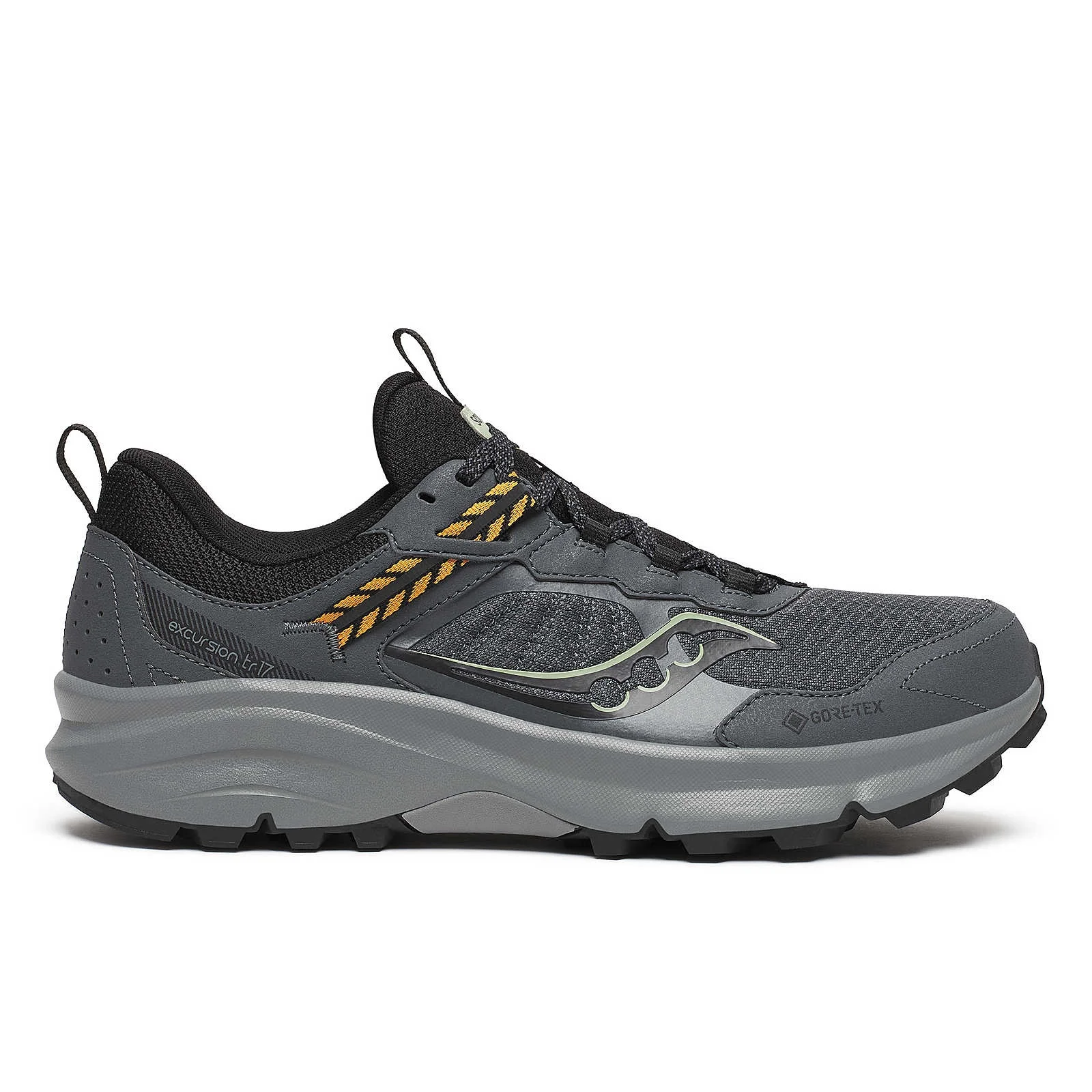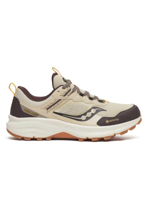 Made for no boundaries. Takes you from road to trail, and back. FEATURES & BENEFITS - VERSARUN cushioning absorbs impact and reduces pressure for comfortable daily treks - Toothy 4.5mm lugs provide dig in traction on the trails - Durable mesh upper for trail-ready protection - GORE-TEX® shield is waterproof, helping to keep your feet dry - Best for: Daily Trail/Casual Treks - Lug height: 4.5mm - Heel-to-toe Offset: 8mm (31mm heel /23mm forefoot) - Weight: 10.1oz (286g) - Sustainability: This style is vegan and contains recycled materials