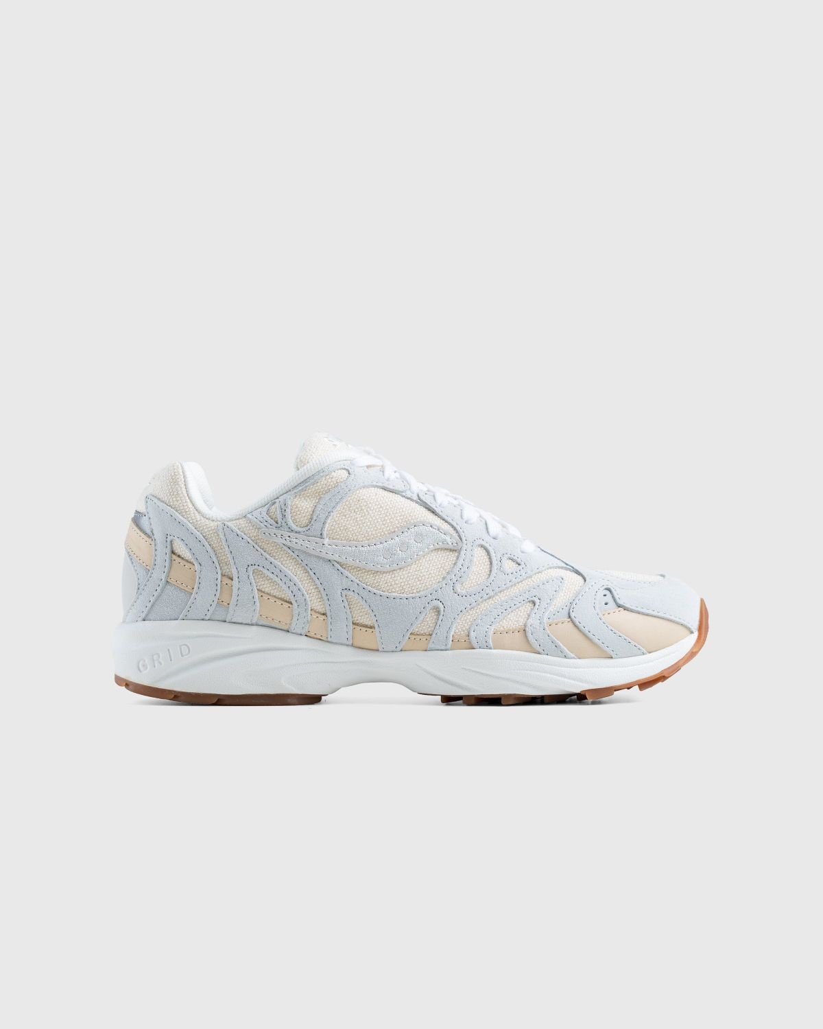 For the Grid Azura 2000, Saucony drew inspiration from an epic, end-of-the-millenium blowout. The retro-flavored silhouette is in turn characterized by a series of wavy lines, featuring leather and textile materials, bold toothy overlays, and thick cushioning, all coming together to deliver a coveted throwback look. Originally scheduled to release around the turn of the millennium, the Grid Azura 2000 was designed for the year 2000, as the name suggests. The sneaker returned to the scene in a major way at the end of 2019 and has since been issued in a string of enticing colorways to revive that sought-after retro aesthetic. Size & Fit Order your regular size. Product Details Leather and textile upper. Nubuck overlays. Undyed hemp canvas quarter. Lace-up front. GRID midsole technology. Gum rubber outsole. Saucony logo at the sides. Embroidered logo at the tongue. Logo detail at the heel. Logo-printed footbed.