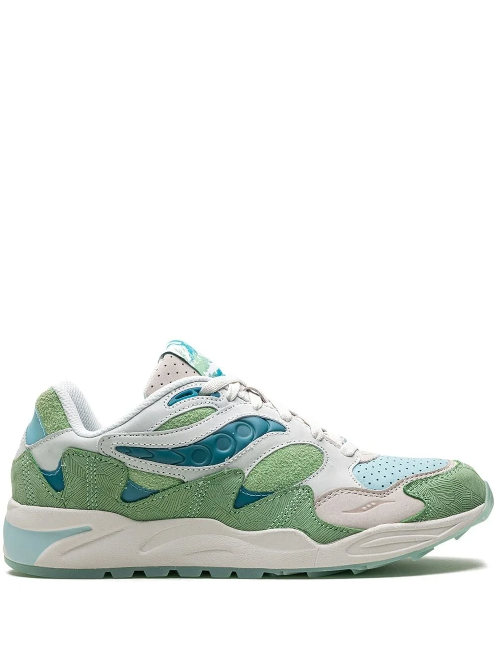 Grid Shadow 2 panelled suede sneakers Highlights - Jade green/multicolour - Leather/suede - Panelled design - Perforated toebox - Contrasting toecap - Round toe - Front lace-up fastening - Interchangeable laces - Logo patch at the tongue - Chunky rubber sole Imported Composition Leather 100%