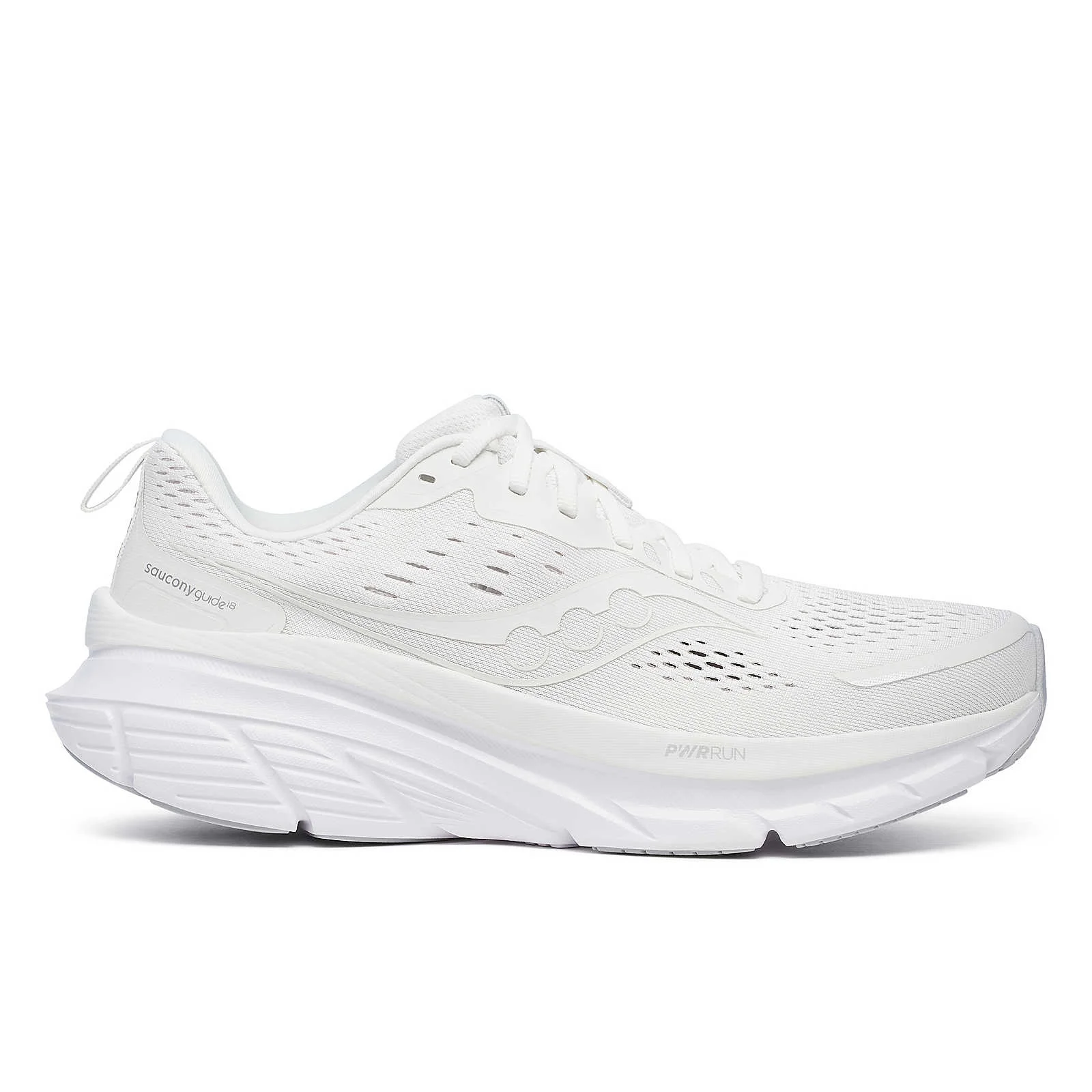 Run with Confidence. The Guide 18 elevates comfort to new heights with enhanced PWRRUN cushioning, providing more protection than ever before. Our innovative CenterPath technology ensures you stay secure and confident with every step. This daily running shoe also features a redesigned upper with breathable mesh for improved airflow and a padded heel collar for a snug fit. Go further with the Guide 18. Made for Daily Movement SUPPORT: Stability CUSHIONING: PWRRUN WEIGHT PER SHOE: Men: 9.6oz (272g) Women: 8.6oz (245g) OFFSET: 6mm (35/29mm) Breathable Upper Everyday Wear CenterPath Technology Highlights - A broad base platform underfoot with higher sidewalls cradles the foot so you can roll smoothly with peak protection mile after mile. - PWRRUN cushioning and PWRRUN+ Sockliner give you maximum comfort and a soft feel from the moment you step in. - Updated heel collar foam offers a locked-in feel and new engineered breathable mesh allows for a fresh feel from start to finish. FEATURES & BENEFITS - CENTERPATH TECHNOLOGY – A broad base platform underfoot with higher sidewalls cradles the foot so you can roll smoothly with better protection mile after mile - MAX COMFORT – PWRRUN cushioning and PWRRUN+ Sockliner give you maximum comfort and a soft feel from the moment you step in - FRESH + SECURE FEEL – The reimagined upper with breathable mesh and padded heel collar ensures a fresh, locked-in feel from start to finish