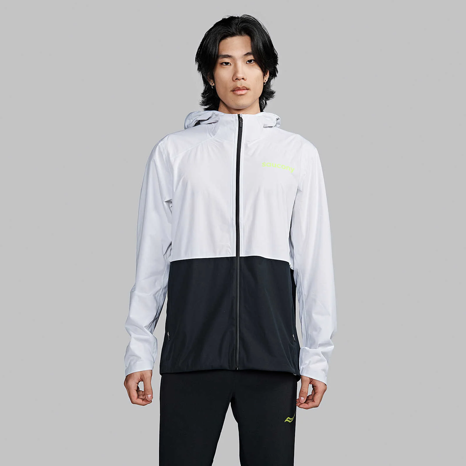 Outrun Mother Nature. Cut through the snow and rain in the Hurricane Waterproof Jacket. Designed to help you stay dry and warm in cold conditions, this capsule uses materials designed for weather-ready comfort. FEATURES & BENEFITS - Full seam sealed waterproof protection - Hood adjustability for peripheral vision - Internal rear panel adjustability for fit - Vented back detail for breathability in high output pursuits - Waterproof centerfront zipper - Zippered hand pockets - Reflective logos and trim at back vent - Primary Material: 76g/m2 100% Recycled Polyester with non-PFC Durable Water Repellant (DWR) - Model is wearing a size medium - Model is wearing a size medium